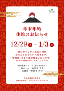 2025年12月27日 【お知らせ】年末年始の休館日 及び 1月抽選会のお知らせ